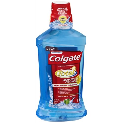 -. Binding : Health and Beauty -. Feature : 12-HR Protection Against Germs / Made in USA -. IsAdultProduct : 0 -. Label : Colgate Palmolive Company -. Manufacturer : Colgate Palmolive Company -. PackageQuantity : 1 -. ProductGroup : Health and Beauty -. ProductTypeName : HEALTH_PERSONAL_CARE -. Publisher : Colgate Palmolive Company -. Studio : Colgate Palmolive Company -. Title : Colgate Total Advanced Pro-Shield Mouthwash Peppermint Blast, 16.9 oz (Pack of 1)