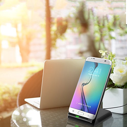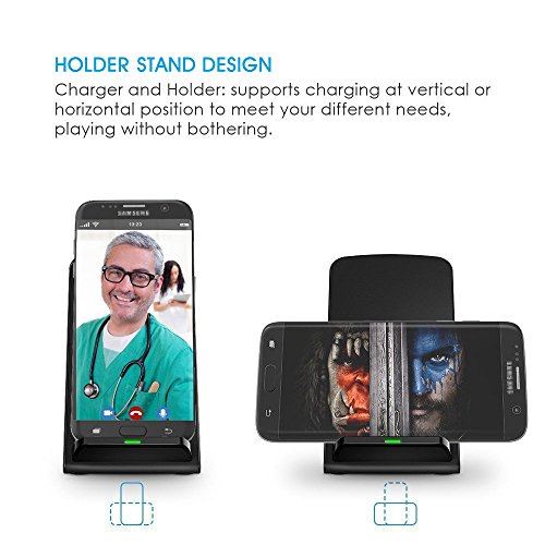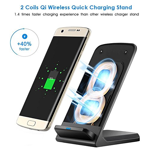 Fast Wireless Charger, Mifanstech 2 Coils Qi Wireless Charging Stand Wireless Phone Quick Charger Station for Galaxy S7 S7 Edge S6 Edge Plus Note 5 All QI-Enabled Devices-Black