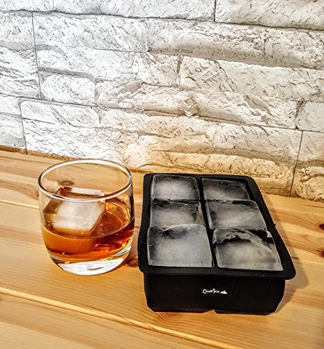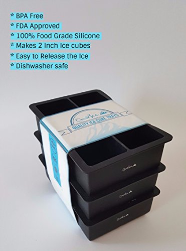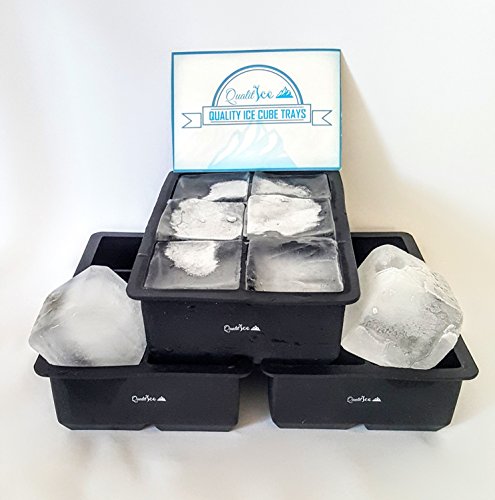 QualitIce - Quality Ice Cube Trays - Silicone Molds BPA free / FDA Approved- Make square Large ice cubes [2 inch each] for whiskey and all kind of beverage- PACK OF 3 MOLDS, Black (18 Ice cubes Total)