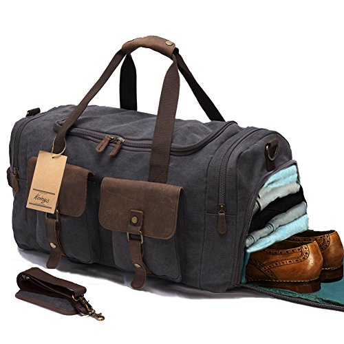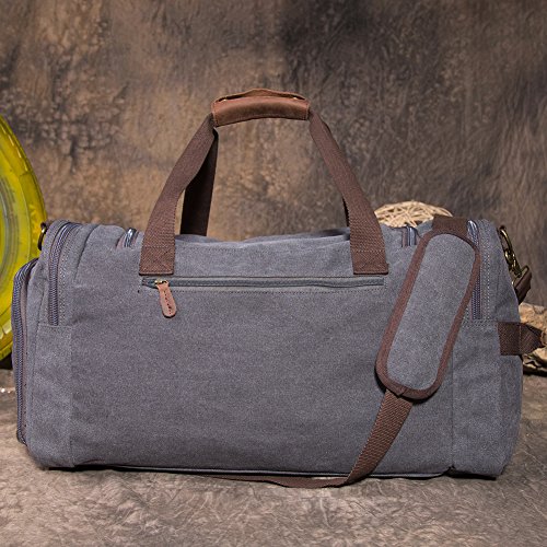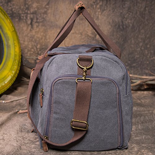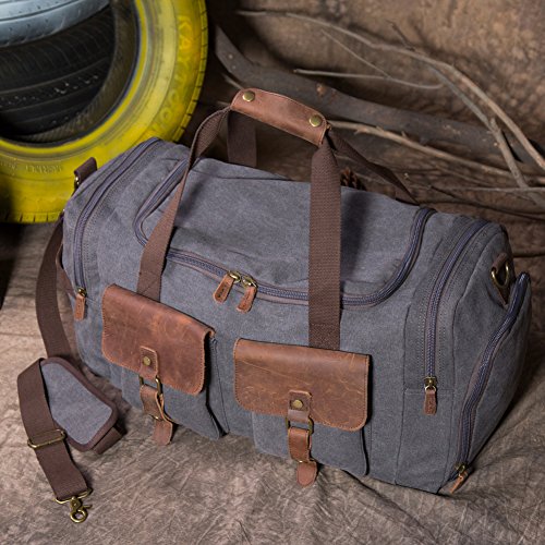 Canvas Duffle Bag Oversized Genuine Leather Trim Weekend Bags for Men and Women Unisex