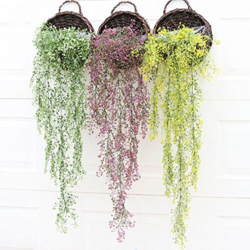 Meiliy Artificial Hanging Flower Vine for Home Garden Wedding Wall DecorationDo you want to have the flowers which never wither and fall?Yes, we do!Enjoy the beauty of natural looking flowers without the hassle of watering, wiltingpetals, or pesky insects. Perfect for all seasons. The flowers remain fresh and beautiful for years,perfect for wedding decoration, table arrangement or elegant home decoration. The artificial bracketplant flowers brings a real sense of nature to the indoors, with leaves hanging down to offer extra cover and a good look. Certain to brighten up any space,this piece will add warmth and comfort.
