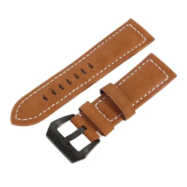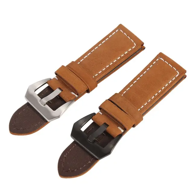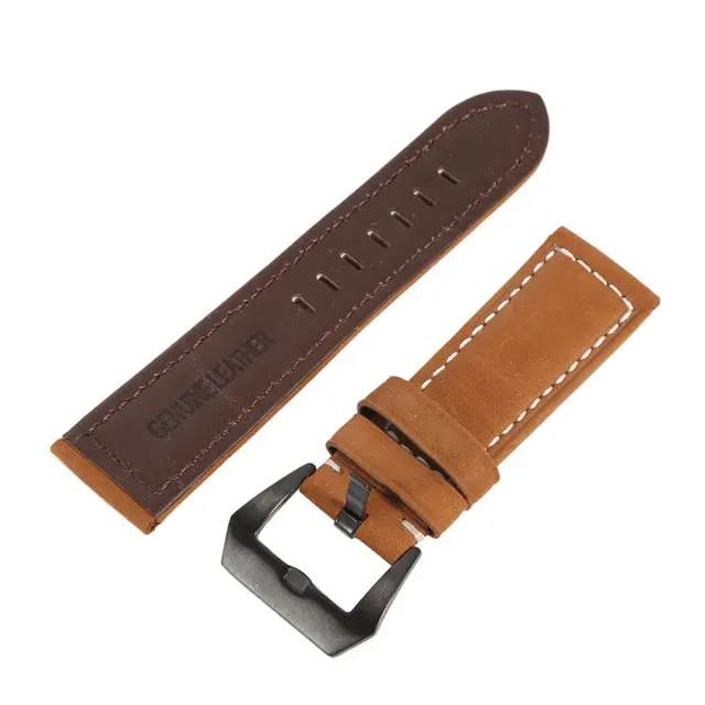 | [해외]22 24 26 미리메터 새로운 두꺼운 카키 노란색 이탈리아 가죽 시계 밴드 스트랩 블랙 실버 버클 |
