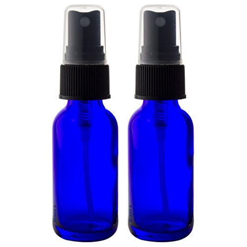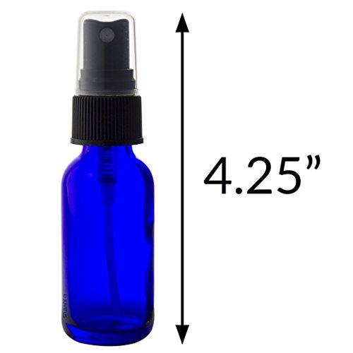 2 oz Cobalt Blue Glass Boston Round Fine Mist Spray Bottle (4 pack) + Funnel and Labels for essential oils, aromatherapy, food grade, bpa free