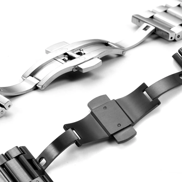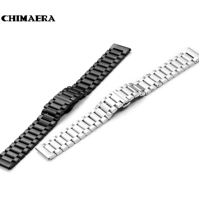 | [해외]Chimaera 22 미리메터 실버 블랙 스트랩 스테인레스 스틸 손목 배포 버클 moto 360 조약돌 시간 lg g 시계 |