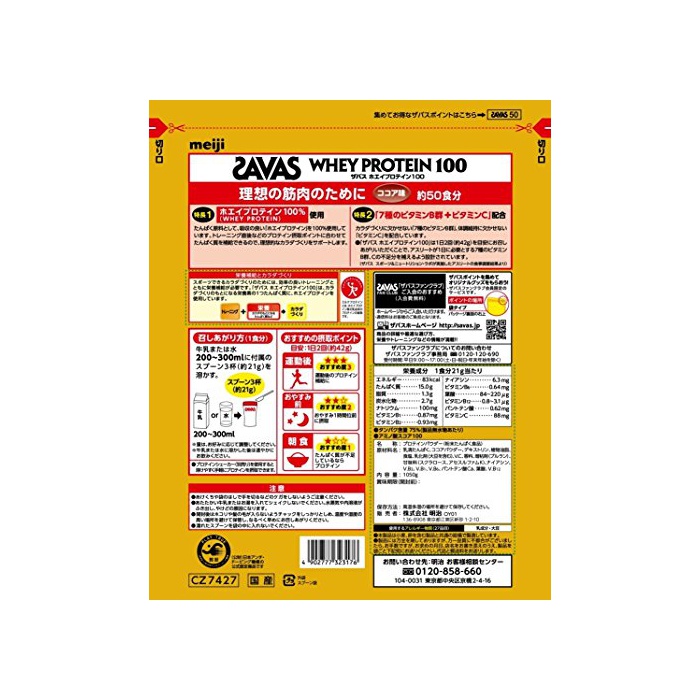 원본상품명: 明治 ザバス ホエイプロテイン100 ココア味【50食分】 1,050g