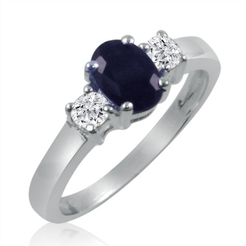 - Feature : Sterling Silver / 1.25ct total gem weight / Choose your size 5-9 / 6 x 4 mm Blue Sapphire center stone
