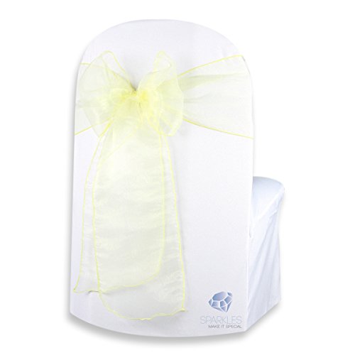 -. Feature : This is a 50 Pack of Brand-New 108 inch by 8 inch premium organza chair cover bow sashes. / Brand-new premium organza chair sashes. Perfect for weddings, banquets, parties, receptions, or any place you wish to create an elegant look. / Easy to tie into a beautiful chair bow, drape across any decoration, or use as an attractive table runner. / 100% brand new, first run production. / Each chair bow arrives untied and carefully folded.