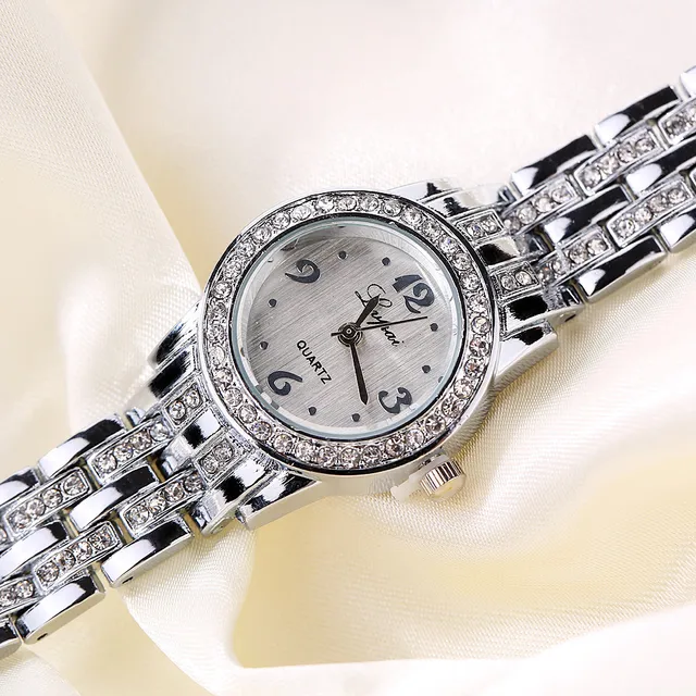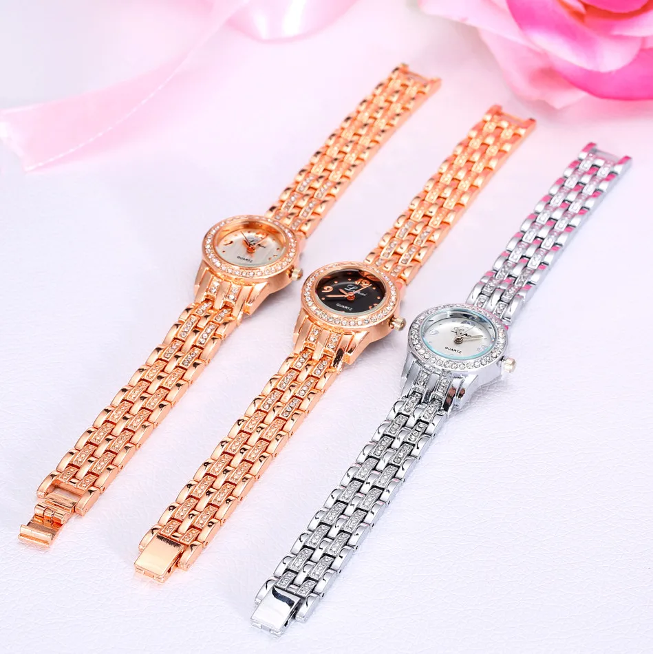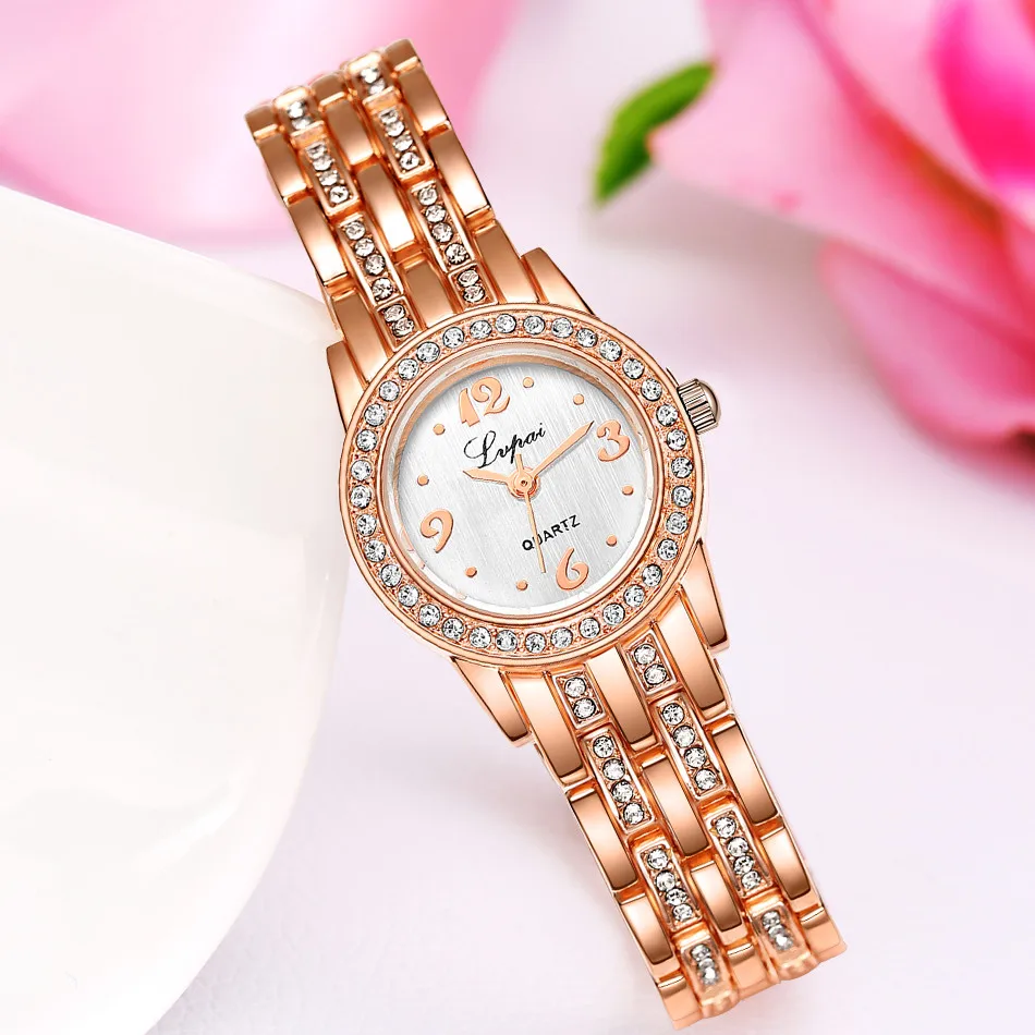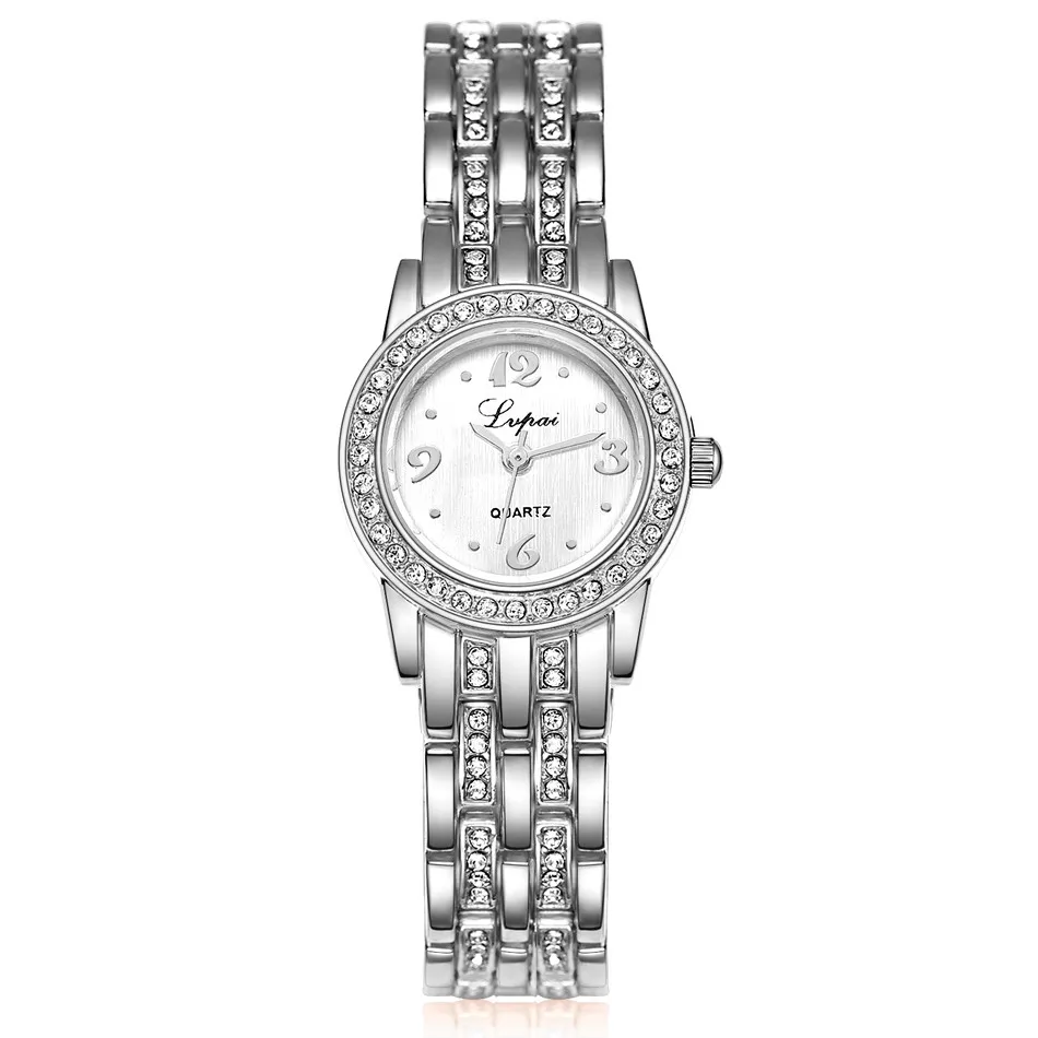 | [해외] Relojes mujer 2017 LVPAI 브랜드 럭셔리 라인 스톤 여성의 드레스 시계 스테인레스 스틸 석영 팔찌 시계 Relogio Feminino |