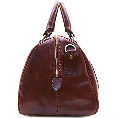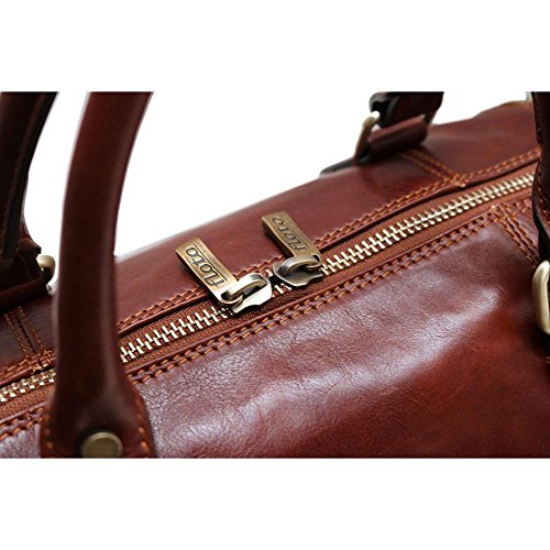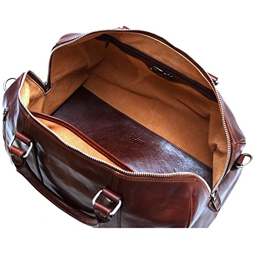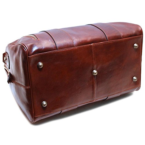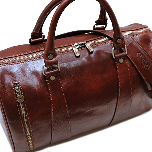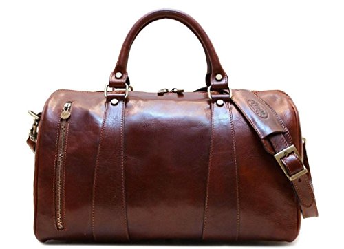 Product Description Super Tuscan ® is our leather lined travel bag collection. Super Tuscan Bag model #2 is made with the best vegetable tanned leather available in Tuscany. We select the most beautiful leather skins for this bag every morning from the tannery in Santa Croche, Italy until we have enough for a production run. To select we only buy the most supple, vibrant in color, beautiful in grain, and most important - the leather must be soft enough that it squeaks when you clench it in your fist. Over time this hand painted leather bag will soften and develop a beautiful patina. The Super Tuscan Duffle Bag is leather lined and has a smartphone pocket, inside tablet sleeve pocket, and inside zip pocket. Each bag has a unique serial number stamped inside the bag. Made in Italy. 9" h x 9" w x16" l Superior Grade Hand Stained Calfskin Leather 7" x 9" Inside Sleeve Pocket Calfskin Leather Suede Lining Inside Zip Pocket Detachable Shoulder Strap Unique Serial Code Stamp Guarantees Authenticity Weight 4.5 Pounds * Optional matching luggage tag available for $10 0