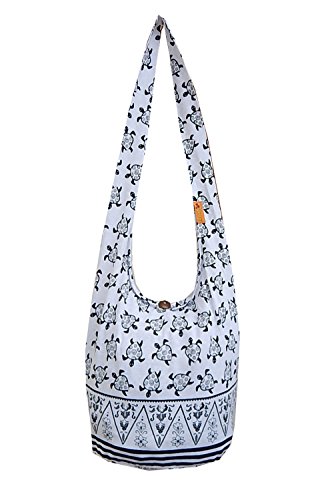 -. Brand : BenThai Products -. Color : black -. Department : unisex-adult -. Feature : Brand new with Tag "BenThai Products" in Original Packaging & Signature gift. / handmade with 100% cotton / Size: 17" wide by 13" deep by 8" base, 46"-48" end to end shoulder strap / The zippered compartment, wood button clap and a zippered inside pocket. -. PackageQuantity : 1 -. ProductGroup : Shoes -. ProductTypeName : HANDBAG -. Size : Large -. Title : BTP! Turtle Sling Crossbody Shoulder Bag Purse Hippie Hobo Thai Cotton Gypsy Bohemian Large