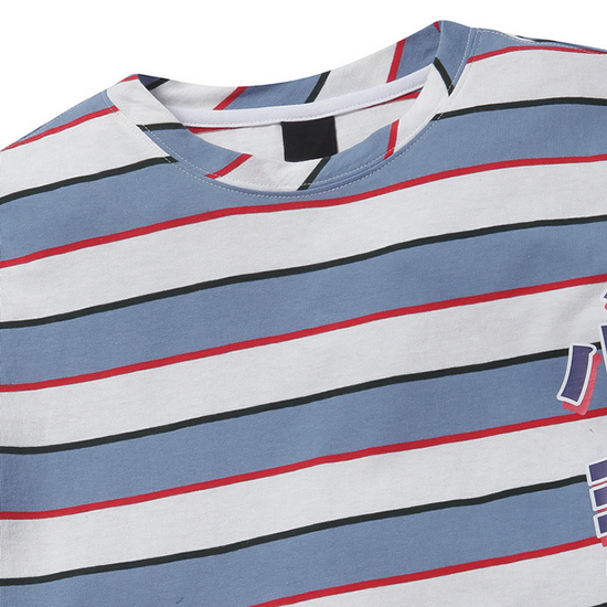 * 소재:면 100%* 색상:블루- 멀티 스트라이프 패턴 디자인의 공용 티셔츠.- 부드러운 면 100% 소재로 착장감이 우수함.- 가슴판의 위트있는 나염으로 포인트를 연출함.- 등판 상단의 로고 그래픽으로 완성도를 높였음.- 다양한 아이템과 유니크 룩 연출이 용이함.* 판매원: 코오롱인더스트리(주)FnC부문* 원산지: 대한민국| 소재정보: 면 100% | 사이즈정보: