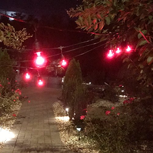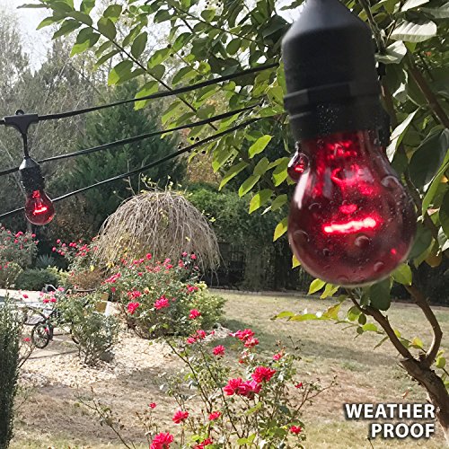 Royal Designs – Premium Weatherproof Indoor/Outdoor String Lights for Yard Patio Garden Porch Wedding Party – 48-Foot Strand with 16 Sockets – Red Light Bulbs Included