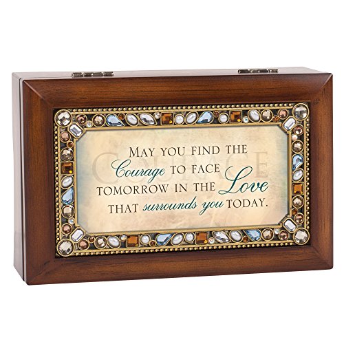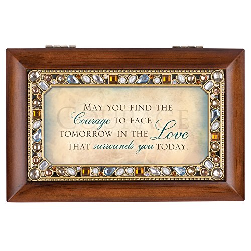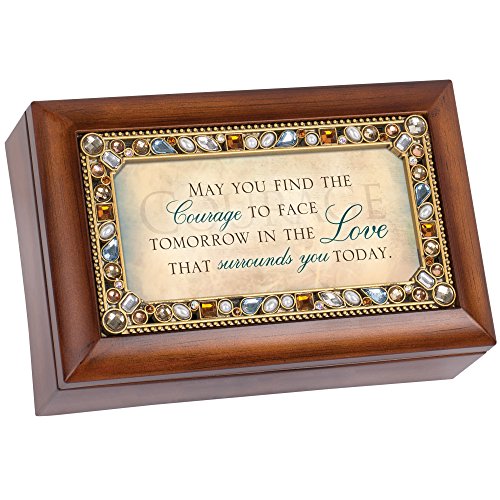 May You Find The Courage Jeweled Woodgrain Jewelry Music Box - Plays Tune Wind Beneath My Wings