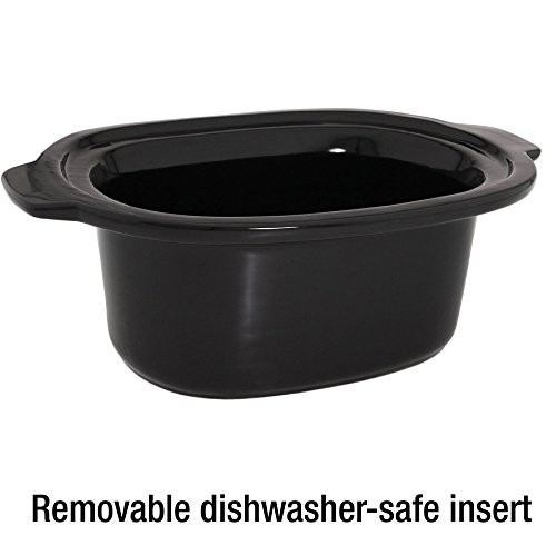 6.5-Quart, oval-shaped, stainless-steel slow cooker with removable black ceramic insert, large enough to cook food for a crowd and goes right to table for serving.