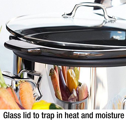 Come home to dinner ready and waiting with this 6-1/2-Quart fully programmable SD700450 slow cooker from All-Clad. Ideal for everything from breakfast foods, soups, and stews to appetizers, main courses, desserts, and more. The oval-shaped slow cooker offers exceptional versatility when it comes to making healthy, delicious meals at home. The slow cooker’s easy-to-read digital display and 26-hour programmable timer allows for prepping ahead of time and walking away—the unit slow cooks food to perfection while you are busy at work or out running errands. Use the buttons on the control panel to choose from three temperature settings: warm, low, or high. The slow cooker automatically switches over to keep-warm mode at the end of the cycle, keeping food at an ideal serving temperature. Riveted stainless-steel handles on the base and integrated handles on the insert allow for a secure hold and easy transport, while the cooker’s tempered glass lid traps in heat and moisture and allows for at-a-glance monitoring. The slow cooker's black ceramic insert lifts out of the base for use at the table for serving and can go in the dishwasher, along with the lid, for quick cleanup. With its polished stainless-steel body and large 6-1/2-quart capacity, the All-Clad slow cooker not only presents beautifully, but it’s also the perfect size to accommodate a larger family or a group of people when entertaining.Feature