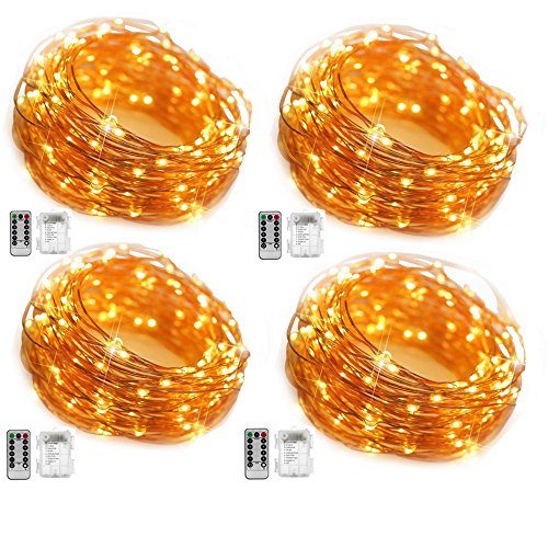 -. Title : Fairy Tail Lights, Witmoving String Lights Battery Operated Waterproof 8 Modes 50 LED 16.4ft Copper Wire with Remote Control For Patio, Bedroom, Party (4 Pack, Warm White)