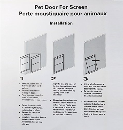 Product information: Material: PP plastic Type: Hanging without magnet control openclose Product Weight: Large: 1.54 lb, Small: 0.57 lb >Product Size: L: outer door frame: 14.17"(W) x 18.11"(H) inner door: 12"(W) x 16"(H) S: outer door frame: 11.42"(W) x 14.57"(H) inner door: 8"(W) x 10"(H) Install steps instruction: 1). Take out the screen and lay it down on a flat hard surface. Separate the frames of the pet door by knife or screwdriver, place them on opposite side of the screen, a lower corner is preferred. 2). Align the pins with holes of the two frames, snap them into place together with your palm and fingers, and then tap them with a hammer. Ensure the pins cross the screen before you snap them, that will help you to close them better and easily. 3). Use a knife to separate 3 sides of the door (left side, right side, bottom) from the frame. Make sure to separate corners completely, snap the two latches into slots. Note: 1). Due to manual measurement error, 1~2mm difference in size is normal, thanks. 2). Make sure that the width and height(shoulder level) of the pet are inferior to the pet screen door, thanks. 0 |