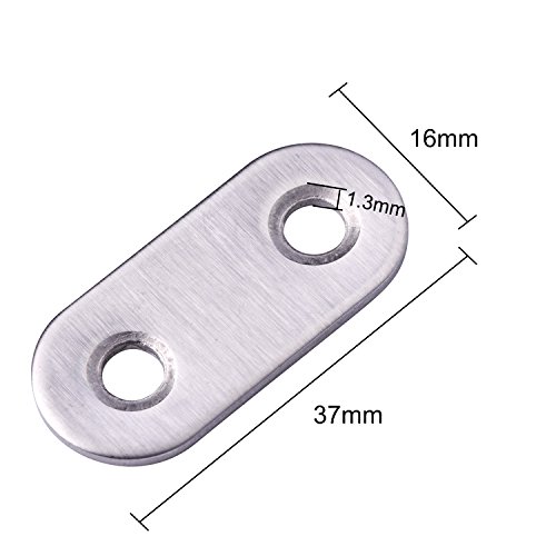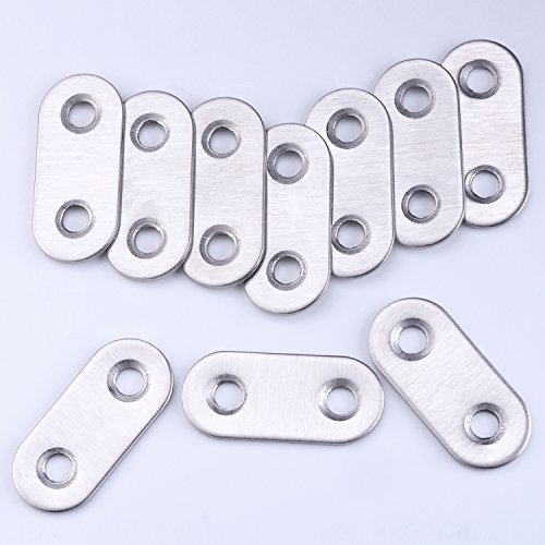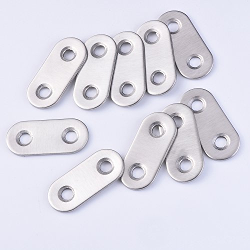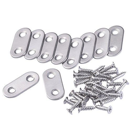 eBoot 10 Pieces 37 by 16 mm Flat Straight Brace Metal Joining Plate and 20 Pieces Screws, Stainless Steel, Silver Color
