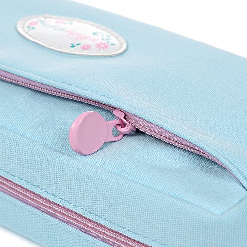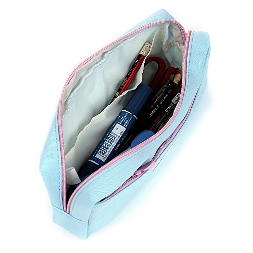 Badalink Student Pen Pencil Case Canvas Coin Purse Pouch Cosmetic Makeup Stationery Bag Case - Light Blue