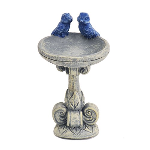 - Mini polyresin blue bird bath on a stake with 2 blue accent birds that will accent your garden nicely