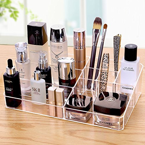 Cq acrylic 9 Grid Makeup Organizer and as a Lipstick and Makeup Brushes Holder,Clear,13.8x8.3x3.6