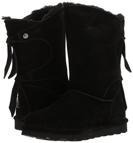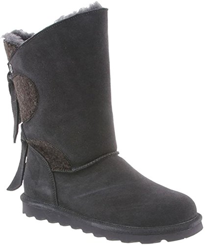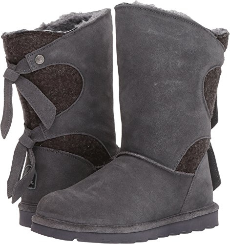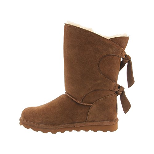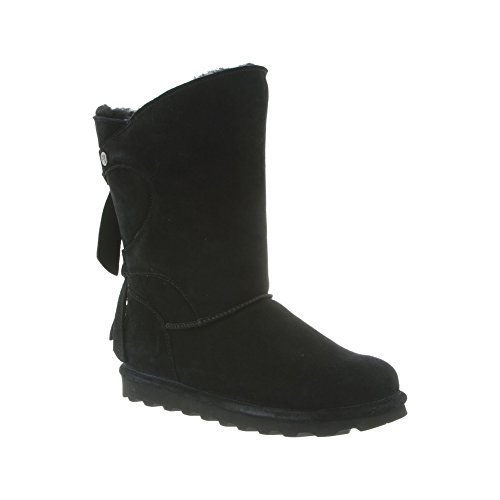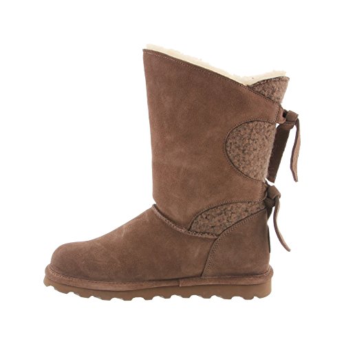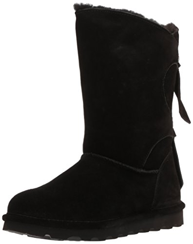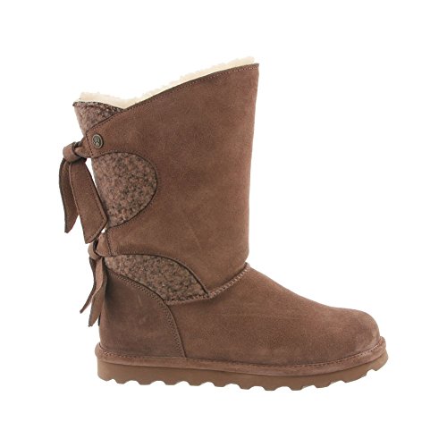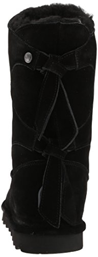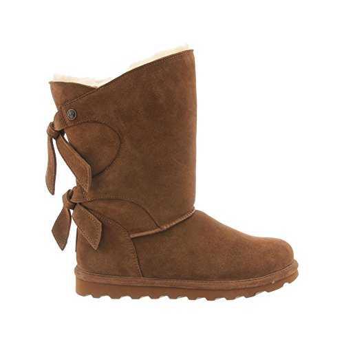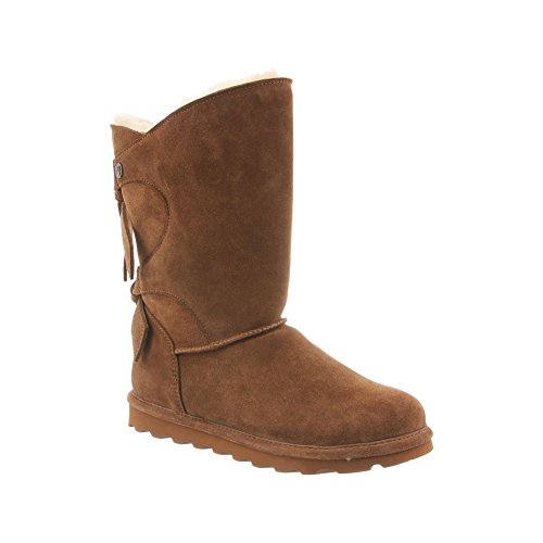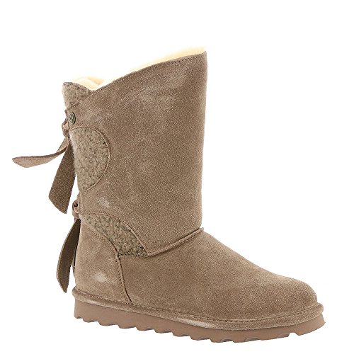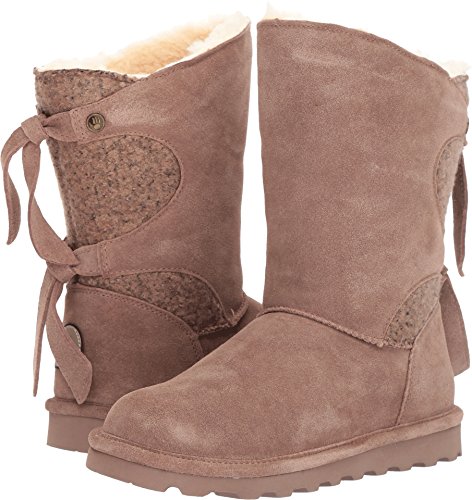 Studio : Bearpaw Publisher : Bearpaw Binding : Apparel Product Description The Willow adds a unique twist to your wardrobe with the asymmetrical top accented with a decorative back double tie detail featuring either a knit or suede back shaft. Treated with NeverWet technology. Features wool blend lining, sheepskin footbed and slim tread blown rubber outsole. Material: Suede, Rubber, Wool. 0