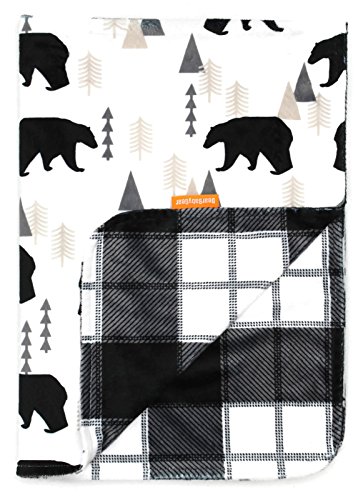 Dear Baby Gear Deluxe Baby Blankets, Custom Minky Print Black Bears, Black and Grey Plaid Minky
