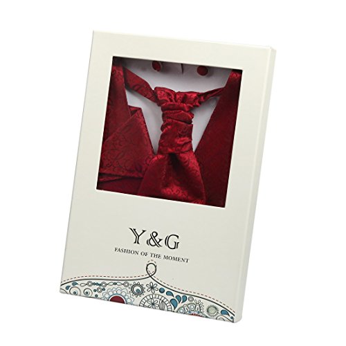 - Feature : Brand Name : Y&G / Metal : Microfiber Woven Patterned Jacquard Design / Sizes: Vest: 36 - 52 (S - 3XL) ( please refer to the size chart in the picture list ) Ascot Tie: 23cm*9.5 Neck diameter: 21.5cm , Hanky: 21.5cm*21.5cm, Cufflinks:1.5cm*1.5cm*2cm / Set including: Tuxedo Vests ,cufflinks, hanky and Ascot Tie / Package: With Free Box Set