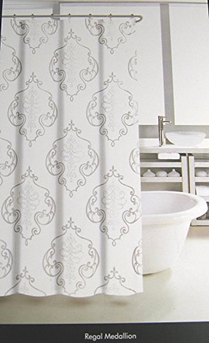 Tahari Home Luxurious Fabric Shower Curtain-Regal Medallion Whtie/Gray-72" X 72"