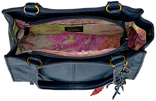 Carry over the shoulder or as a crossbody with removable and adjustable leather straps with contrast edge paint. Also features a removable town and country leather fringe tassel with metal feathers.