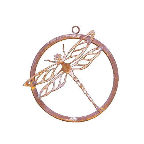 Elegant Garden Design Dragonfly Ring, Steel Silhouette with a Rusty Patina