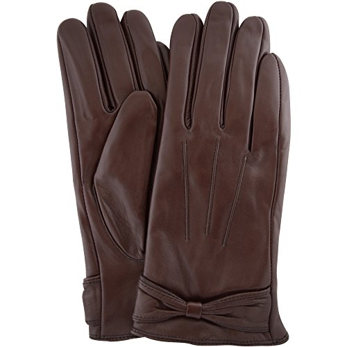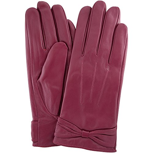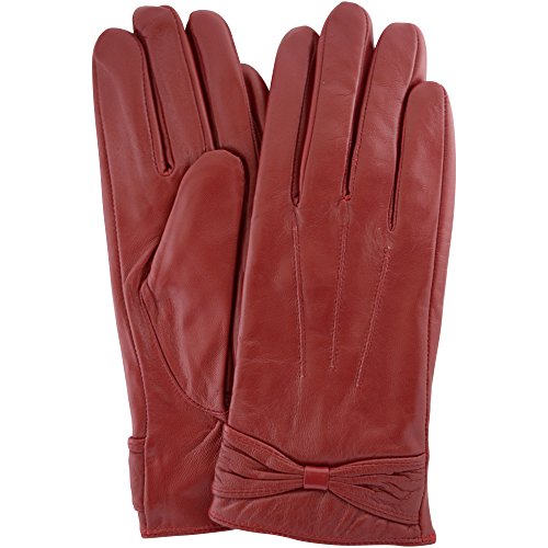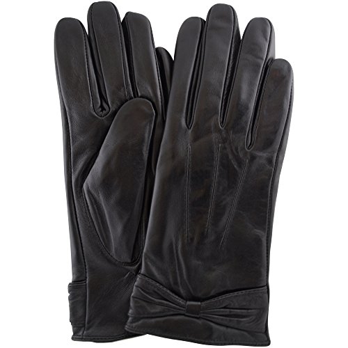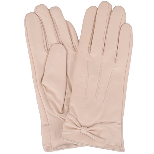 Product Description Ladies Butter Soft Preminum Leather Glove with bow 3 Point Stitch designPremium Butter soft real leather. Fully Fleece Lined. Beautifully Soft and comfortable. Pretty Bow design with leather trim and 3 point stitch detail 0