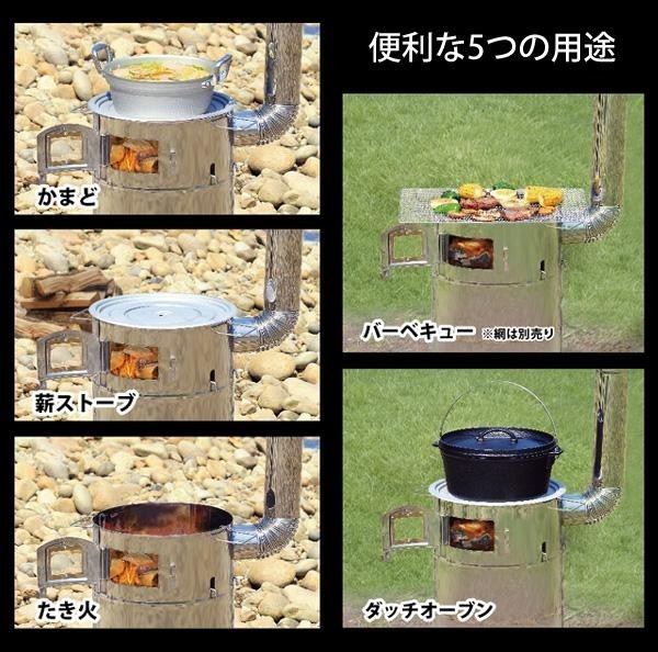 | バーベキューや煮炊きなど、便利な5つの用途! |