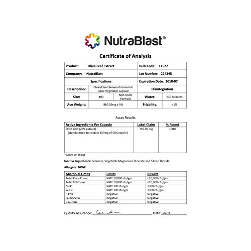 -. Title : NutraBlast Olive Leaf 750Mg Extract - Non-GMO - Antioxidant, Supports Bone, Joint, and Cardiovascular Health - Made in USA (60 Capsules)