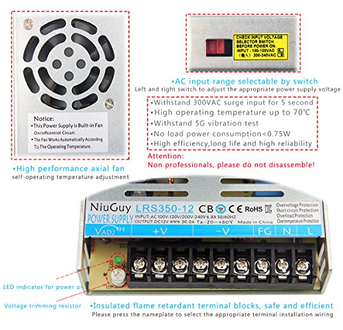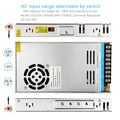 12V30A DC Switching Power Supply,350W,Wide Voltage 110V/230V Universal Regulated ,Ultra-thin High-Power Power Supply Unit,for Radio, Computer Project,LED Strip Light,NIUGUY