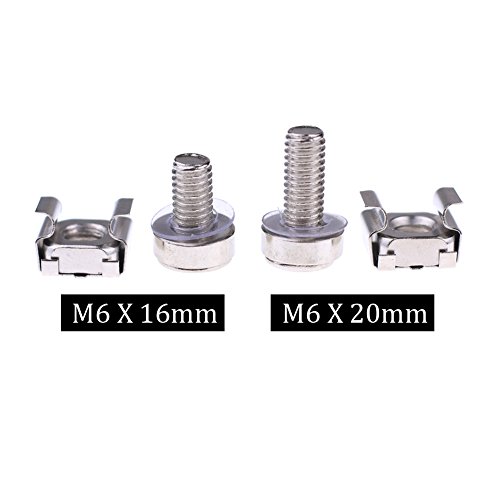 Hilitchi 60sets M6 Square Hole Hardware Cage Nuts & Mounting Screws Washers for Server Rack and Cabinet (M6x16mm) (screw+washer+cage nut)