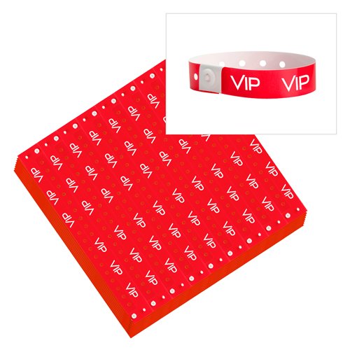 -. Title : Neon Red VIP - Wristco Plastic Wristbands - 100 Ct.