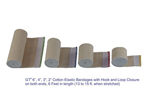 -. Title : GT 2" Cotton Elastic Bandage with Velcro Closure on both ends, 2 inches wide x (13 to 15 ft when stretched), 12 Pack