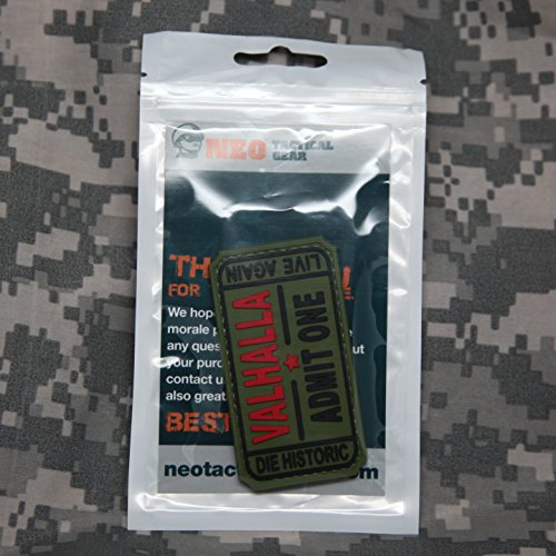 -. Binding : Misc. -. Brand : NEO Tactical Gear -. Color : OD -. Feature : VALHALLA ADMIT ONE PVC Patch by NEO Tactical Gear - High Quality Morale Patch - Hook Velcro Sewn On Back / PATCH DIMENSIONS 2.9"x1.6". Great for military, airsoft and to decorate any loop velcro surface. / MORALE PATCH COMES shipped in NEO Tactical Gear resealable retail packaging. Packaging is great to store your patches in when not being used. / ADD THIS MORALE PATCH to your collection today! / BUY WITH CONFIDENCE satisfaction guaranteed. If you are not fully satisfied with the quality of our patch or the design, we will refund 100% of your money. -. IsAutographed : 0 -. IsMemorabilia : 0 -. Label : NEO Tactical Gear -. Manufacturer : NEO Tactical Gear -. PackageQuantity : 1 -. ProductGroup : Sports -. ProductTypeName : SPORTING_GOODS -. Publisher : NEO Tactical Gear -. Studio : NEO Tactical Gear -. Title : VALHALLA ADMIT ONE PVC Morale Patch by NEO Tactical Gear