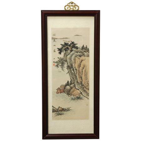 This professionally hand-painted silk artwork depicts a small cottage nestled along a river flowing along a dramatic cliff. It has been matted in silk brocade and framed under glass, and comes with a decorative brass hanger for easy wall mounting. Because it is painted by hand, each one is different and unique, making it a truly personal gift for a loved one.Feature