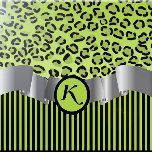 Rikki Knight RK-6intilec-2341 6" X 6" Letter "K" Lime Green Leopard Print Stripes Monogram Design Ceramic Art Tile