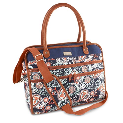 4 exterior (2 small zipper, 1 large zipper for food, & 1 back magazine pocket) & 5 interior pockets (One 15" laptop sleeve) to ensure ultimate organization while on-the-go