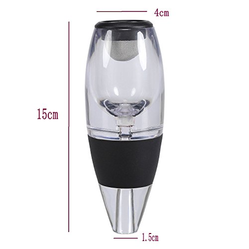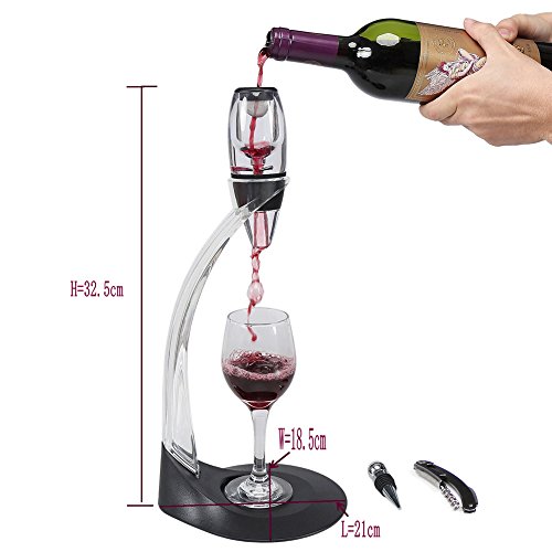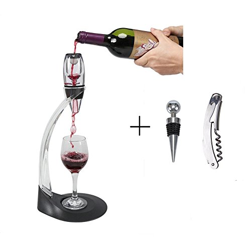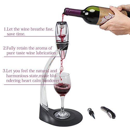 -. Feature : QUALITY & SAFE MATERIALS: food grade acrylic pourer and tower + ABS stand + silicone stopper + 2CR13 Stainless steel corkscrew / FAST WINE DECANTER FUNCTION: 360 degree air breath, make your wine breath quickly and get ready fast, get a better bouquet and enjoy your wine, wow, so attractive / EASY TO USE WITH STAND: built with tower and stand, fit for almost all wine bottles, detachable, so easy to assemble, clean and use / ELEGANT & DELUXE DESIGN: looks great, so beautiful with streamline and practical design, you can put it on anywhere, looks like an artware or decoration / GIFT COLOR BRAND PACKAGE: good quality color box with safe plastic protect package, fit for gift purpose perfectly, business or personal, it's ok