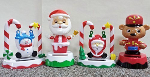 Christmas Solar Set of (4) Swinging Santa, Snowman, Drumming Bear Bobblehead Santa by Make It...