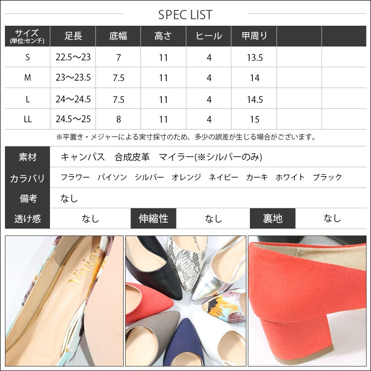 S :足長 22.5-23cm 底幅 7cm 高さ 11cm ヒール 4cm 高周り 13.5cm