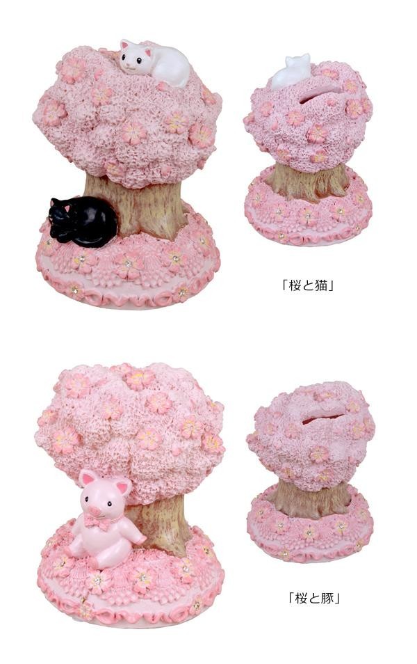 ほのぼのとした猫や豚とさくらの組み合わせが可愛らしい、レジン貯金箱です。ピンクのさくらが可愛らしいSAKURA COLLECTIONシリーズ。可愛らしい貯金箱でしっかりお金を貯めよう♪2種類からお選びください。 |