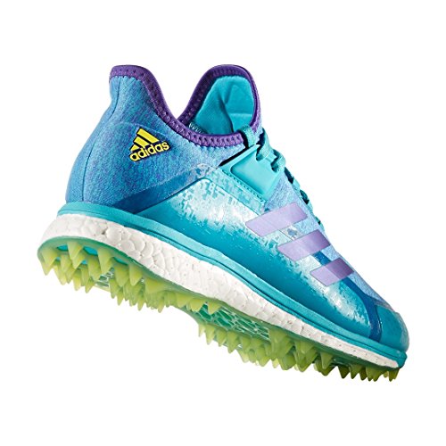Studio : Adidas Publisher : Adidas Binding : Apparel Product Description Take the pass and make the game-winning shot in these women's hockey shoes. Built with BOOST for energy-returning cushioning, the shoes have a lightweight textile upper with a sock-like fit. Lugs on the moulded rubber outsole give you great grip as you explode past the defence.BOOST technology combines superb cushioning and energy return throughout the whole game.The midsole shape allows the forefoot to be close to the ground for direct control and to further support the natural running movement. The outsole features a TPU grid structure that is highly resistant, supports multidirectional movements and offers ideal grip. The stretchable inner sock provides the player with an unmatched glove-like fit. Foil-covered synthetic layers deliver additional protection against water as well as impacts from the ball. 0