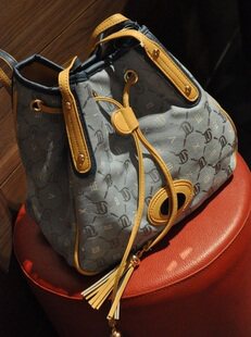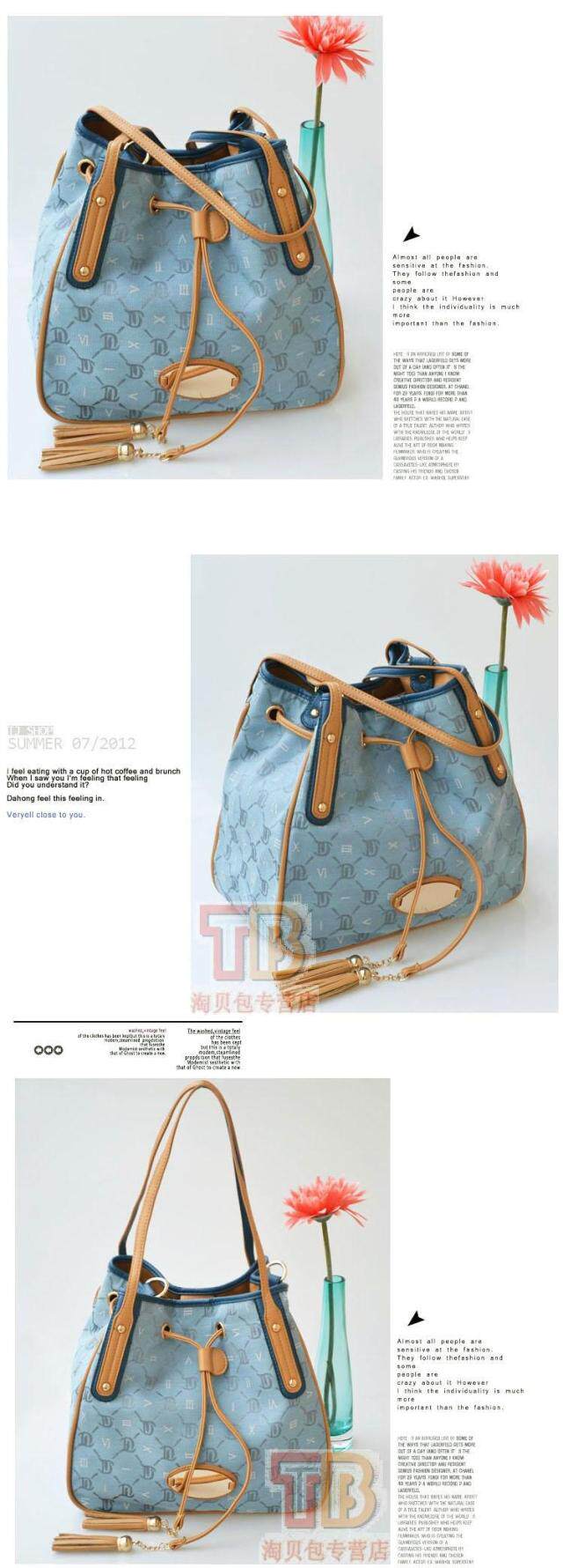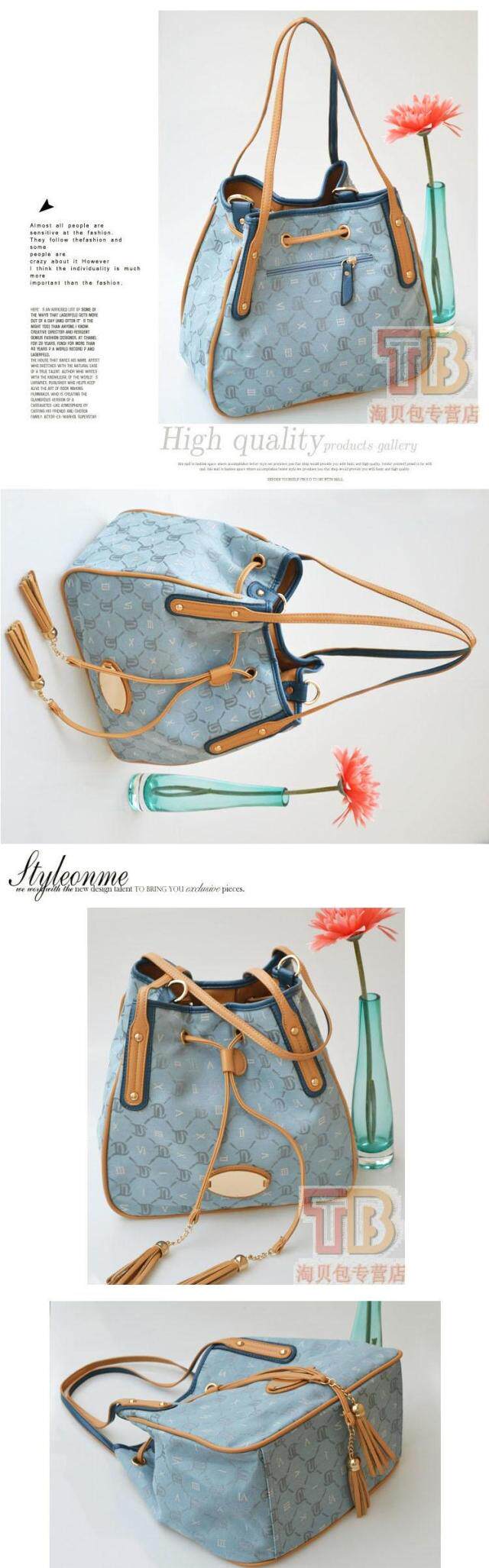 Korean alphabet fringed denim vintage bucket bag casual bag