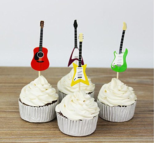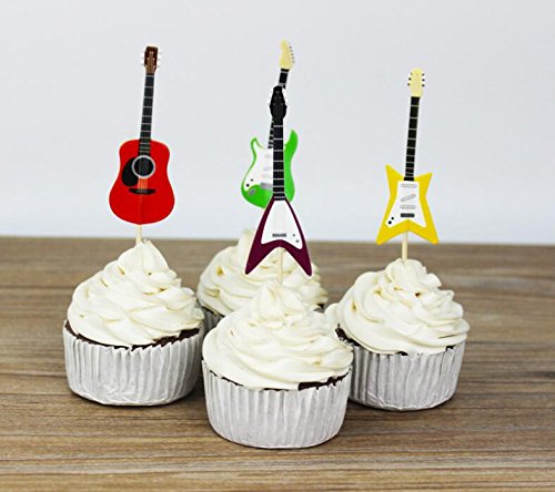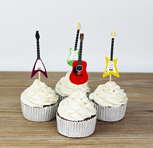 Yunko Set of 24 Cake Cupcake Decorative Cupcake Topper for Kids Birthday Party Themed Party Baby Shower (Guitar)