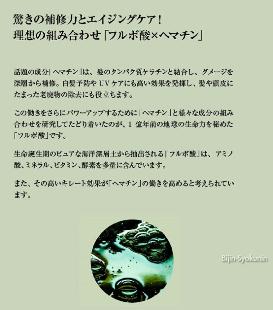 ケラチンとリンゴアミノ酸でやさしく洗う。髪純度を高めて無垢な美しさへ。 フルボ酸とヘマチンを配合したエイジングケアシャンプーです。 きめ細かく濃密でもちもちな泡立ち。泡パックにも最適です。